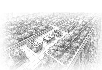 「想像・創造を超えた緑化」をテーマに、自然と人の共存を考え、皆さまの暮らしにオアシスをもたらす景観を提供していきます。