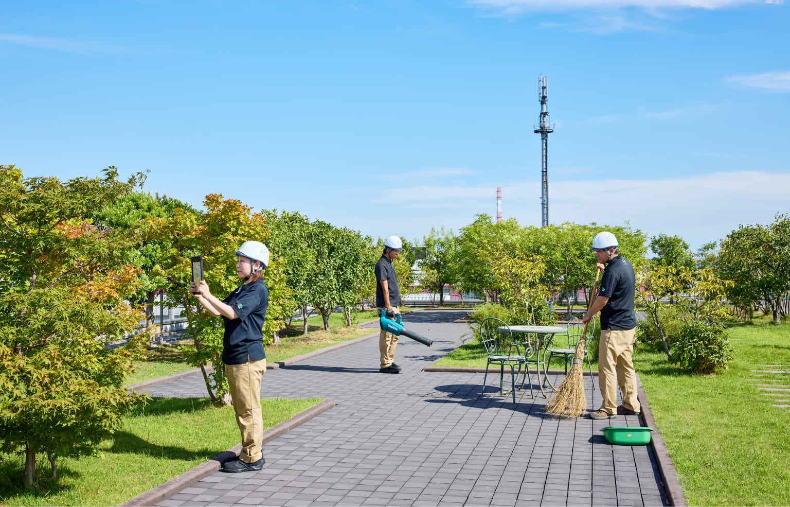 緑化工事や植栽の現場で、施工から維持管理まで幅広く担います。屋上緑化の施工をはじめ、樹木や植物の植栽、剪定や除草などのメンテナンス業務を行います。作業完了後には、現場の写真撮影や報告書類の作成も担当します。