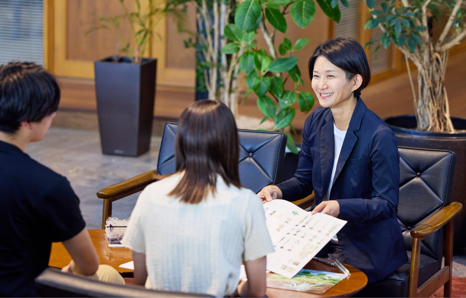 お客様のニーズを把握し、最適なプランを形にする仕事です。お客様が目指す緑化のイメージや要望について詳細なヒアリングを行い、最適なご提案を行います。発注後は、緑化デザインや図面の作成まで一貫して対応します。